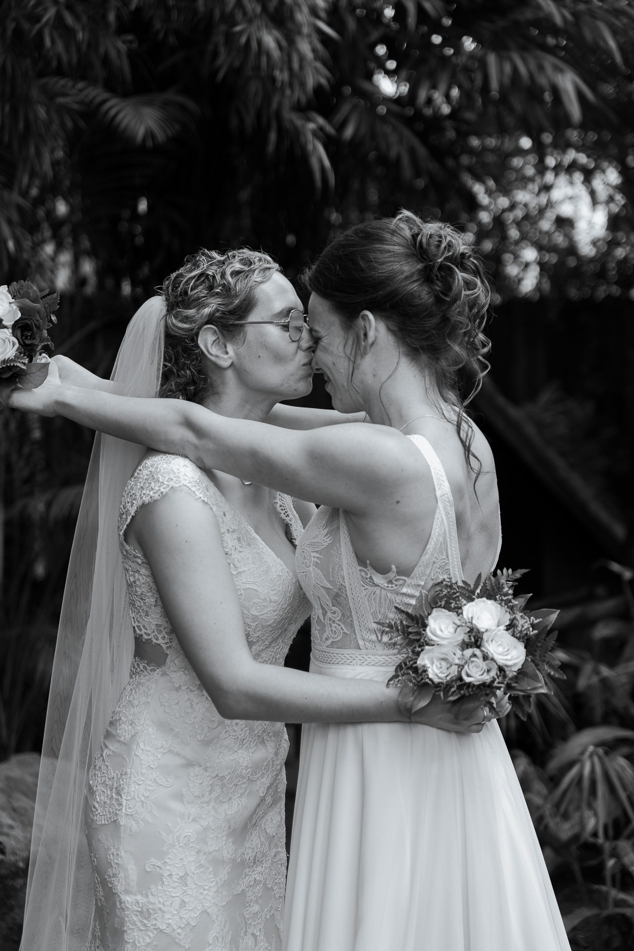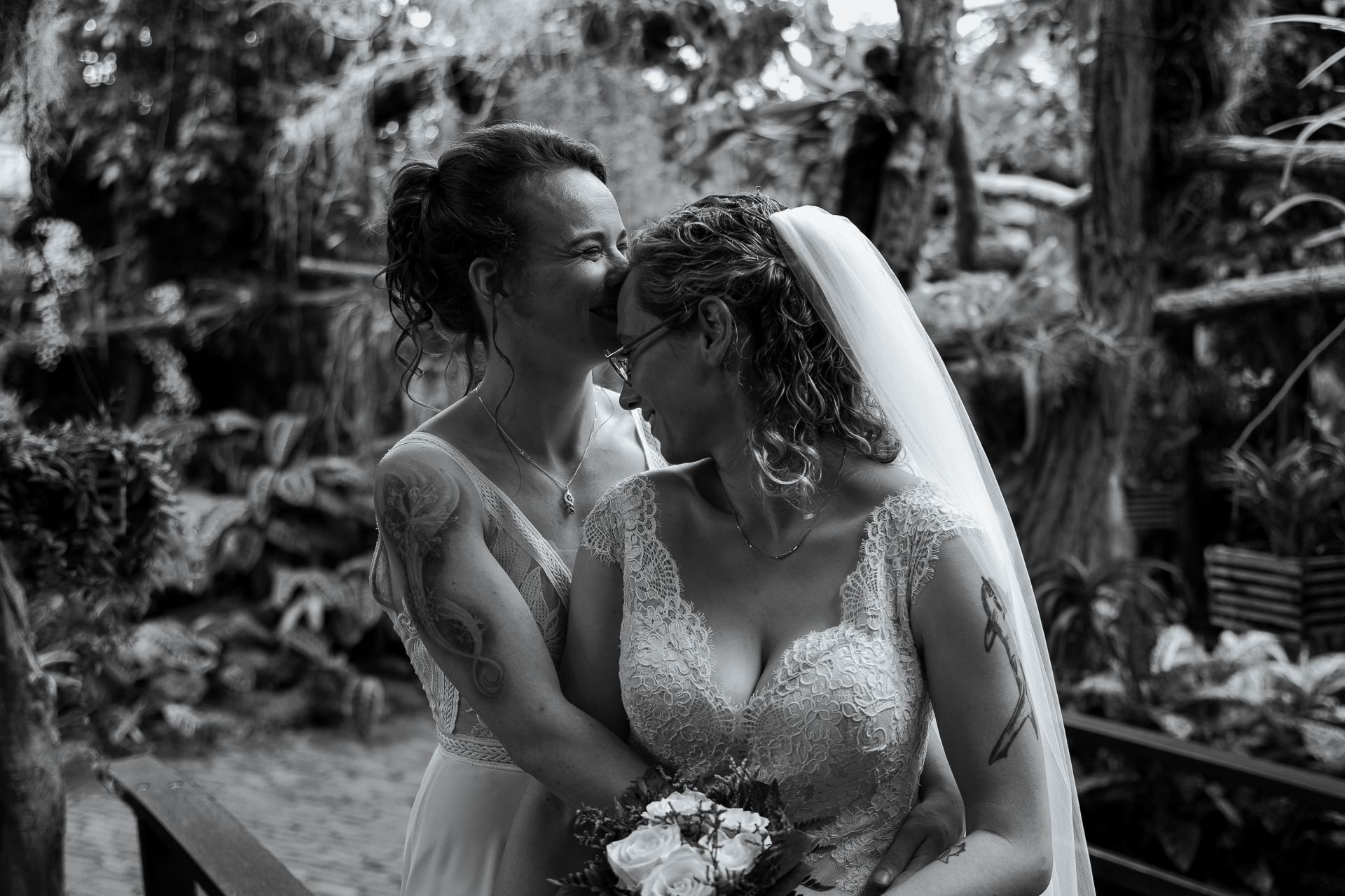 Natasja en Kimberley trouwden op 7 mei 2024 in Pantropica (voorheen de Orchideeënhoeve). Ze kozen voor een pakket op maat, waar ze het aankleden, de ceremonie en het feest vast lieten leggen met fotografie. In de middag genoten de vrouwen van een loveshoot; even tijd voor elkaar.